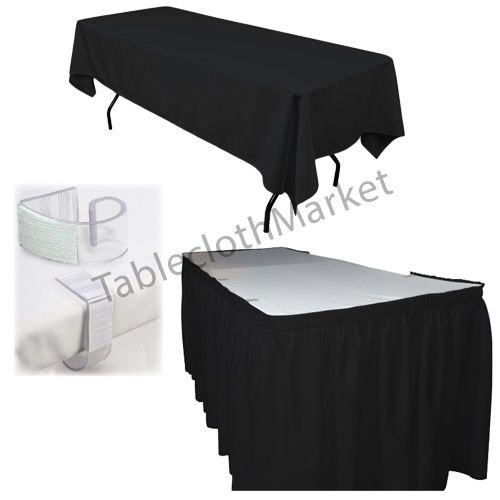 21 5 Tablet Skirt With Topper For 8 Foot Rectangular Tables Box Pleated Skirting Wrinkle Resistant And Machine Washable Polyester Fabric Black Bxskt21bk Walmart Com